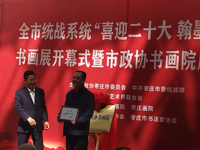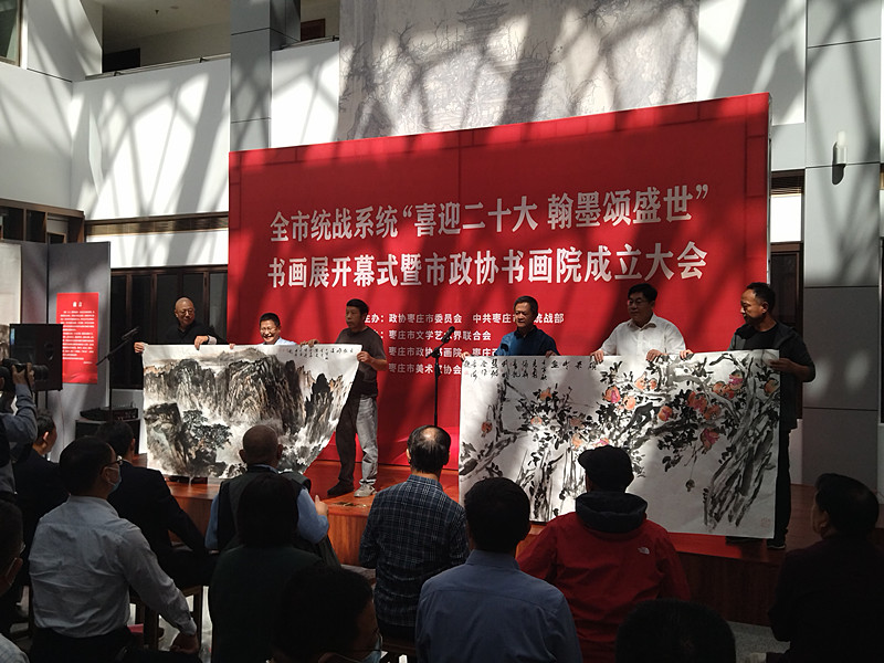 喜迎二十大,翰墨頌盛世。為表達全市統(tǒng)戰(zhàn)系統(tǒng)和廣大政協(xié)委員紅心向黨、共筑復興的強烈心聲, 9月23日,山東省棗莊市統(tǒng)戰(zhàn)系統(tǒng)“喜迎二十大翰墨頌盛世”書畫展開幕式暨棗莊市政協(xié)書畫院成立大會,在棗莊市政協(xié)機關(guān)舉行。本次展覽由政協(xié)棗莊市委員會、中共棗莊市委統(tǒng)戰(zhàn)部主辦,棗莊市文學藝術(shù)界聯(lián)合會協(xié)辦,棗莊市政協(xié)書畫院、棗莊畫院、棗莊市美術(shù)家協(xié)會、棗莊市書法家協(xié)會承辦,并出版了展覽作品集。