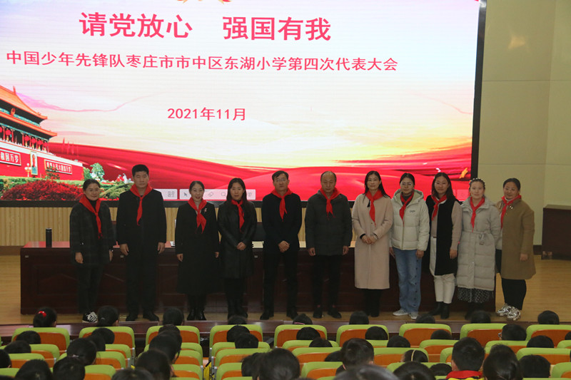 為進(jìn)一步加強(qiáng)學(xué)校少先隊(duì)組織建設(shè),培養(yǎng)少先隊(duì)員的主人翁意識(shí)和民主參與意識(shí),增強(qiáng)少先隊(duì)員光榮感和責(zé)任感,11月12日,“請(qǐng)黨放心,強(qiáng)國(guó)有我”——中國(guó)少年先鋒隊(duì)棗莊市市中區(qū)東湖小學(xué)第四次代表大會(huì)隆重召開(kāi)。東湖小學(xué)黨支部書(shū)記、校長(zhǎng)田中華,副校長(zhǎng)張友偉、靳會(huì)、李慶海,少先大隊(duì)輔導(dǎo)員王妍,以及少先隊(duì)員代表,輔導(dǎo)員代表參加了會(huì)議。