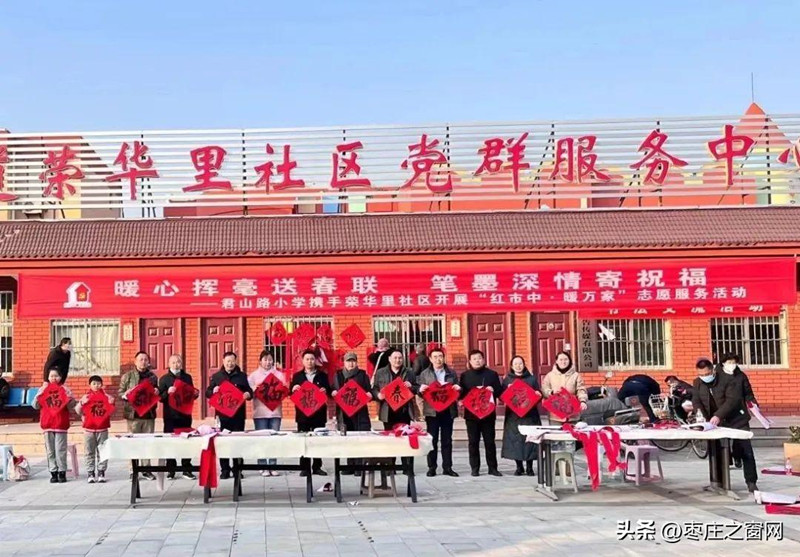 1月11日下午,接到區(qū)融媒體中心的電話,《棗莊之窗》小編驅(qū)車來到榮華里社區(qū),感受這里不一樣的年味氣氛。來到社區(qū)大院,看到書法愛好者、社區(qū)紅馬甲、學(xué)生們,還有周邊的社區(qū)居民早早來到大院忙乎了起來,你搬案桌,我裁紙,他研墨水,準(zhǔn)備著一場書寫春聯(lián)的筆墨盛會(huì)。